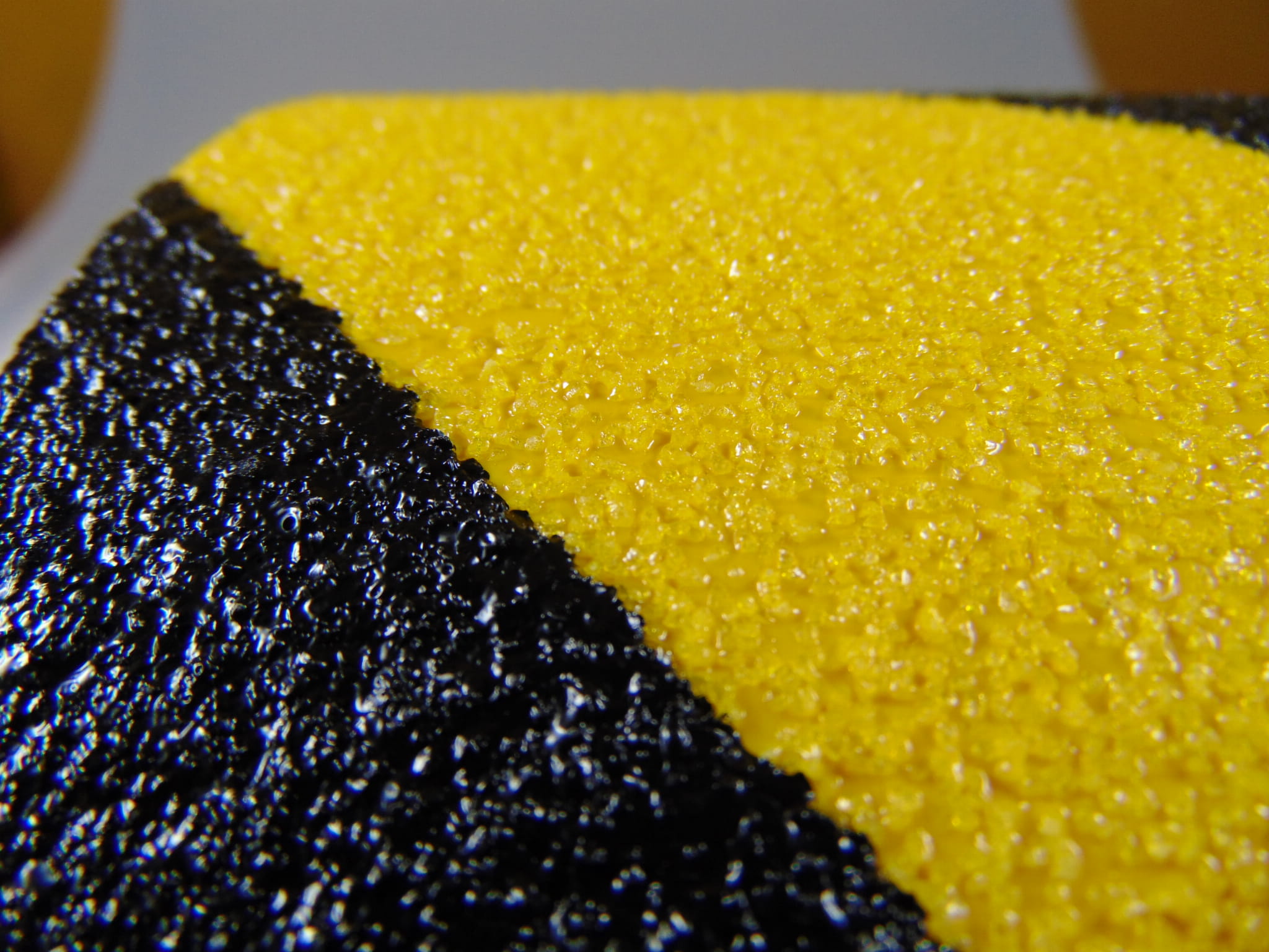 Tlenek glinu ma formę bardzo ostrych i twardych kryształów, dzięki czemu produkt charakteryzuje się wysoką chropowatością oraz wysokim współczynnikiem tarcia (CoF). Kryształy tlenku glinu są zespolone z warstwą nośną za pomocą barwionej żywicy polimerowej, co czyni produkt wyjątkowo trwałym.